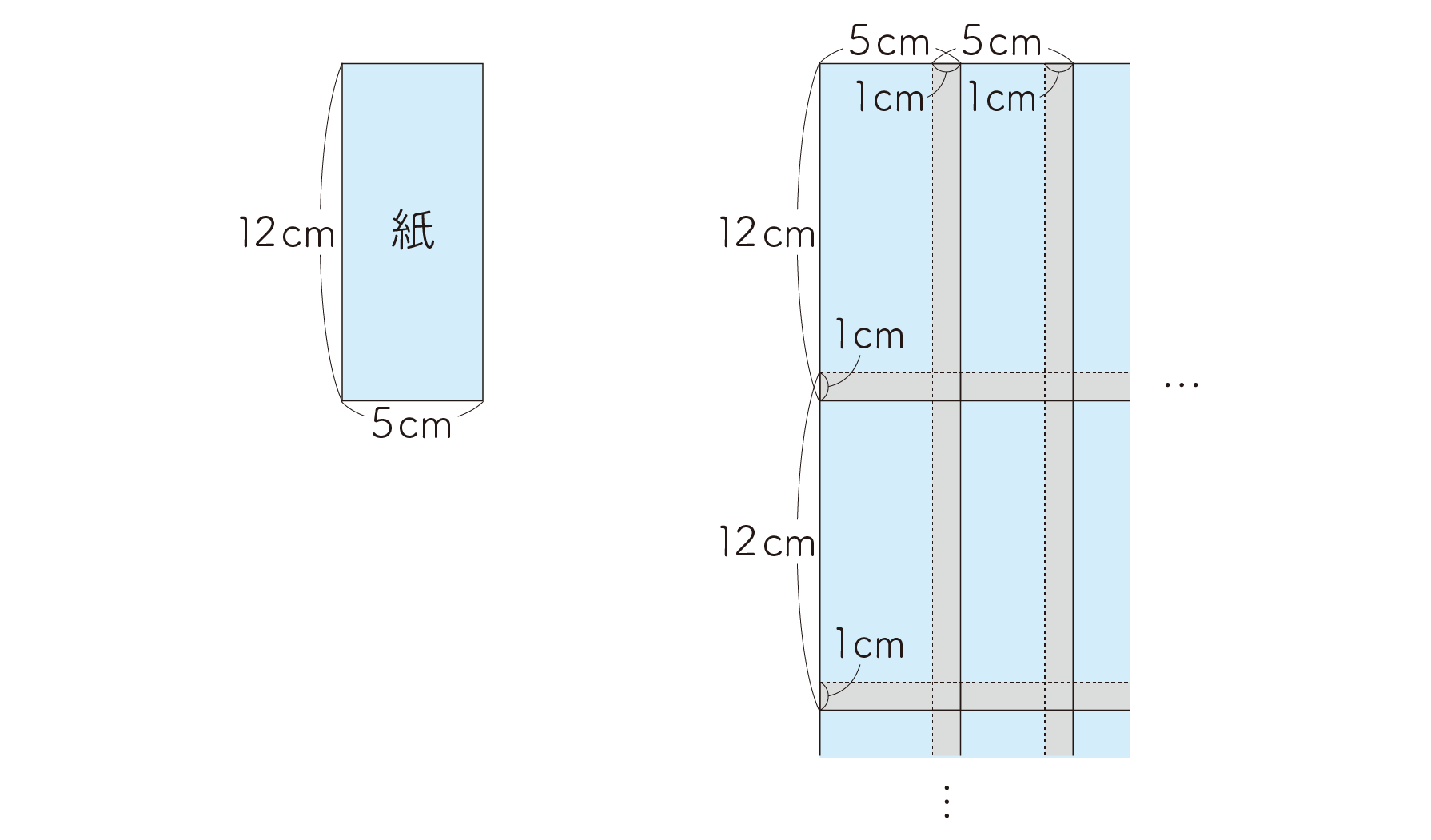 長方形の紙を縦にm枚,横にn枚貼り合わせると、