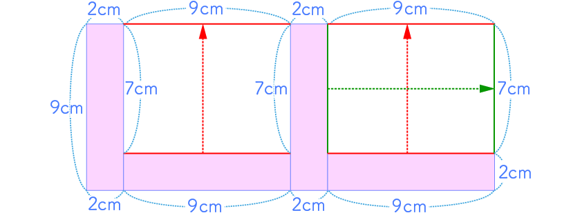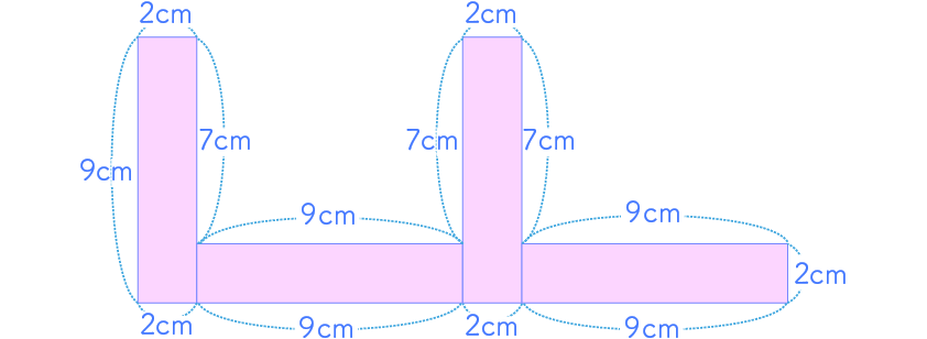 また、1つの長方形のまわりの長さは、(9+2)×2=22(cm)